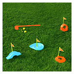 В набореклюшка, 2 мяча, 4 препятствия с флагами, аксессуары