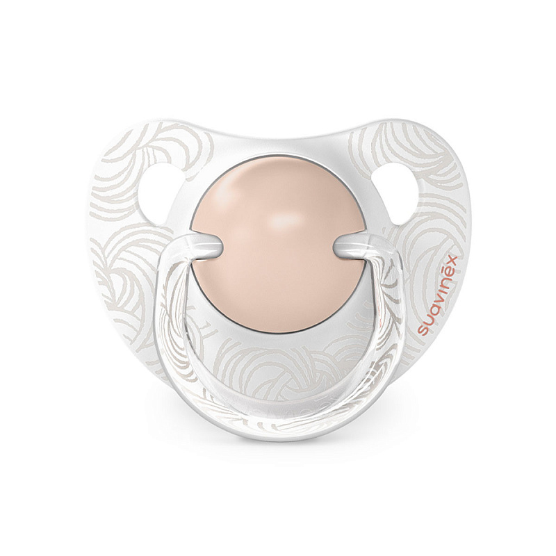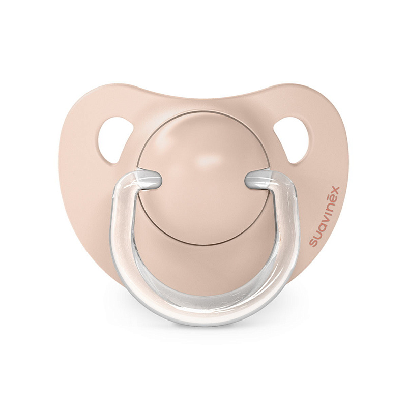 Анатомическая пустышка Suavinex с соской со скошенным краем анатомически правильно располагается во рту ребенка, не препятствуя естественному развитию ротовой полости и прикуса.