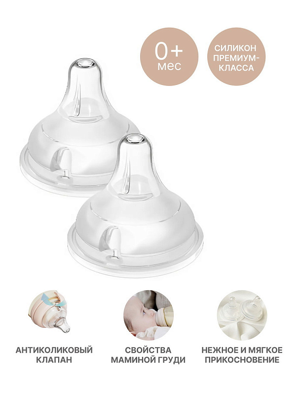 Антиколиковая соска – идеальный выбор для самых маленьких. Предназначена для новорожденных детей от 0+ месяцев. Оптимальна как для докармливания при грудном вскармливании, так и при питании ребенка исключительно детскими смесями. Форма полностью повторяет материнскую грудь. Силиконовая соска выполнена из нежного и мягкого материала премиум-класса. Не содержит вредных веществ и абсолютно безопасна для здоровья. Специальные клапаны препятствуют появлению в бутылочке вакуума. Малыш ест в своем темпе и не заглатывает воздух, что обеспечивает комфортное пищеварение без колик и срыгиваний. Для большего удобства мамы предусмотрен индикатор правильного захвата. Подойдет на бутылку с широким горлышком. Легко моется после кормления. Производство находится в Южной Корее, соблюдается тщательный контроль качества на всех этапах.