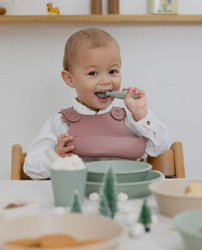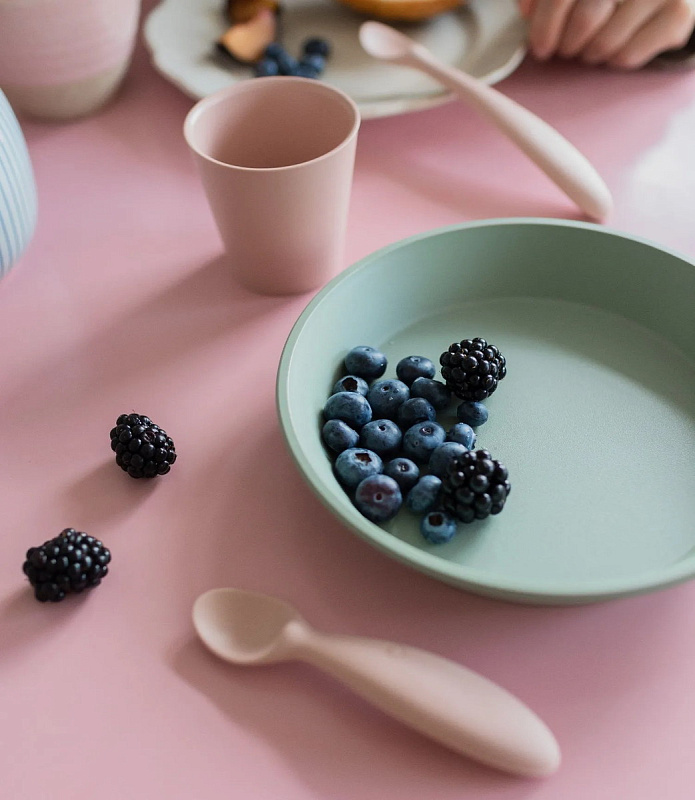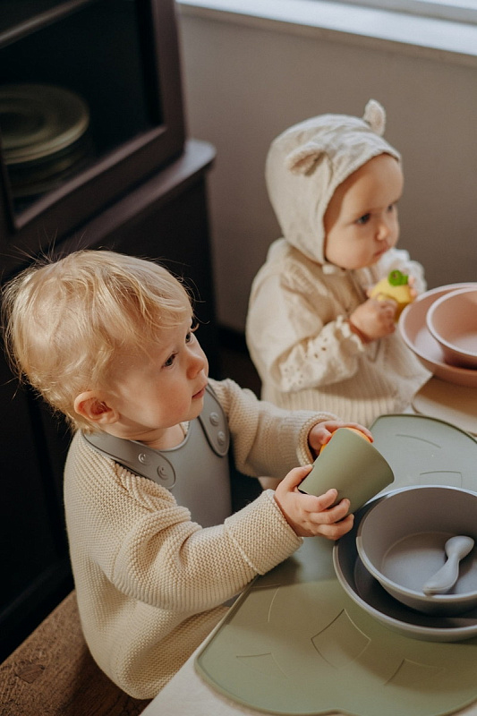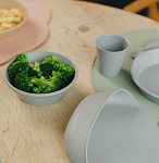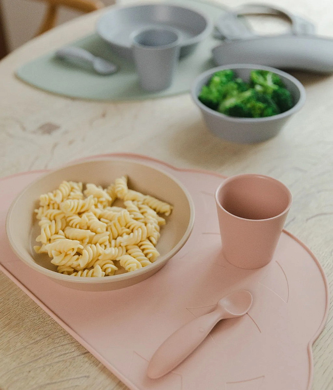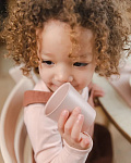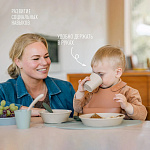 Эргономичная форма и тактильно приятный нескользящий материал обеспечивают максимально удобный захват для маленьких детей. Открытая форма чашки, как у взрослых, побуждает малышей практиковать навыки глотания, развивая правильные движения губ, челюстей и языка. Материал не впитывает запахи и не окрашивается.