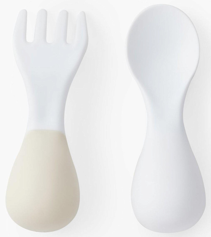 Набор столовых приборов Happy Baby ложка и вилка 15060 white & light gray