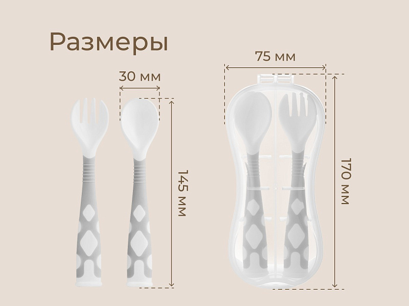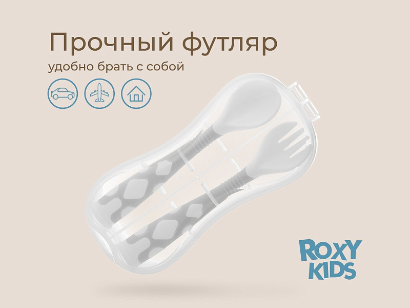 Набор столовых приборов Roxy-Kids для малышей в пенале RFD-002-Gr серый