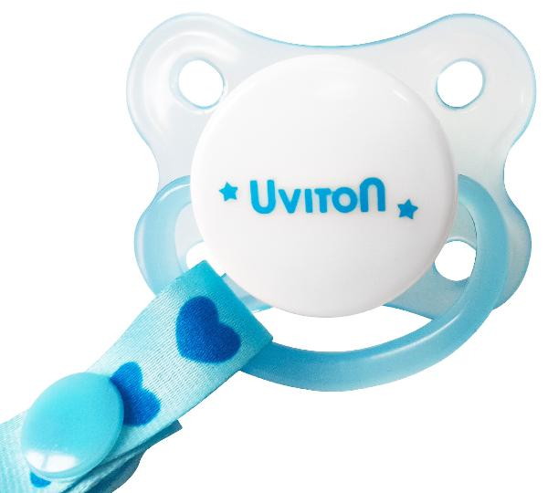 устышки Uviton имеют ортодонтическую форму, способствующую здоровому развитию челюстно-лицевого аппарата малыша. Ортодонтическая форма пустышки обеспечивает формирование правильного прикуса ребенка. Пустышка удовлетворяет естественный сосательный рефлекс и тренирует мышцы, что играет важную роль в развитии речевых навыков. Изделие изготовлено из безопасных, нетоксичных материалов. У