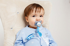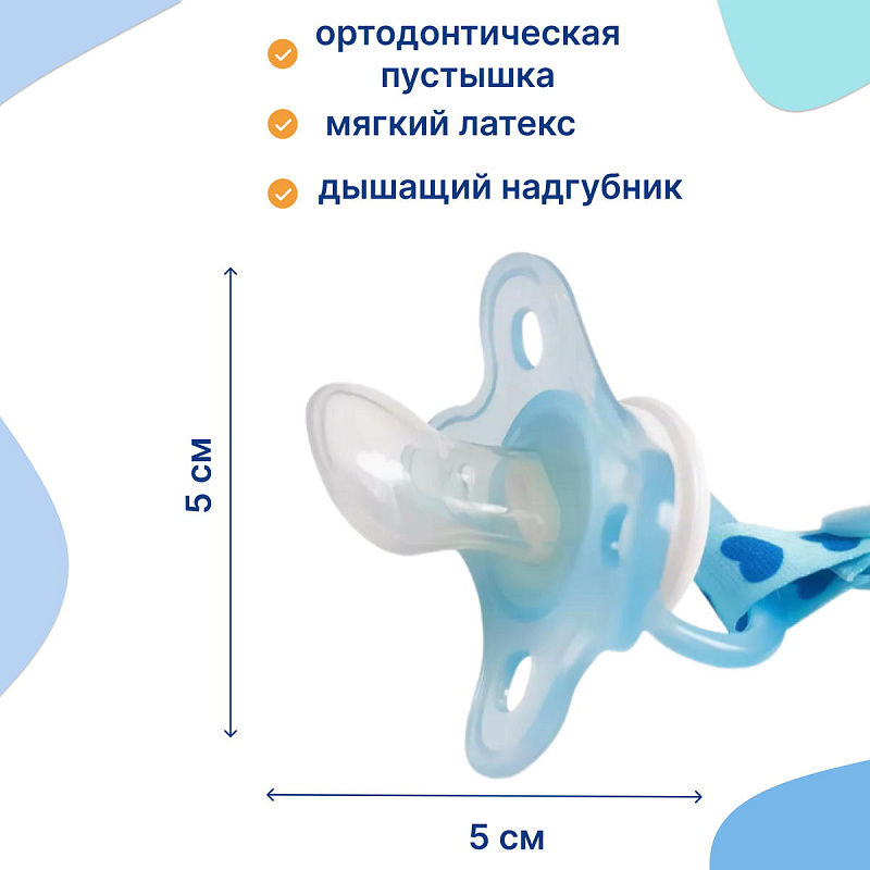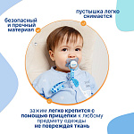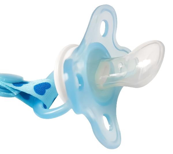 В наборе идет удобный и практичный держатель для пустышки в виде ленточке в тон к пустышке.