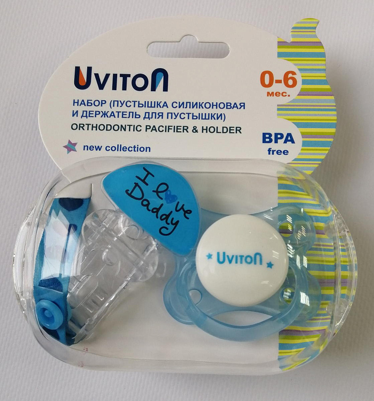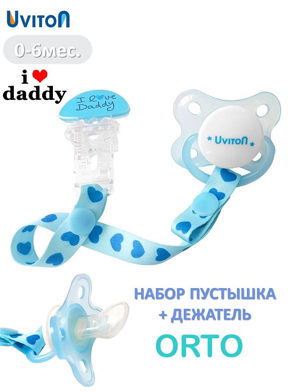 Набор Uviton I love daddy пустышка и держатель 0-6 мес 0193/01