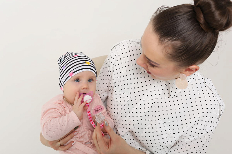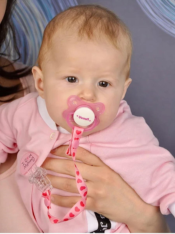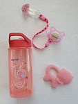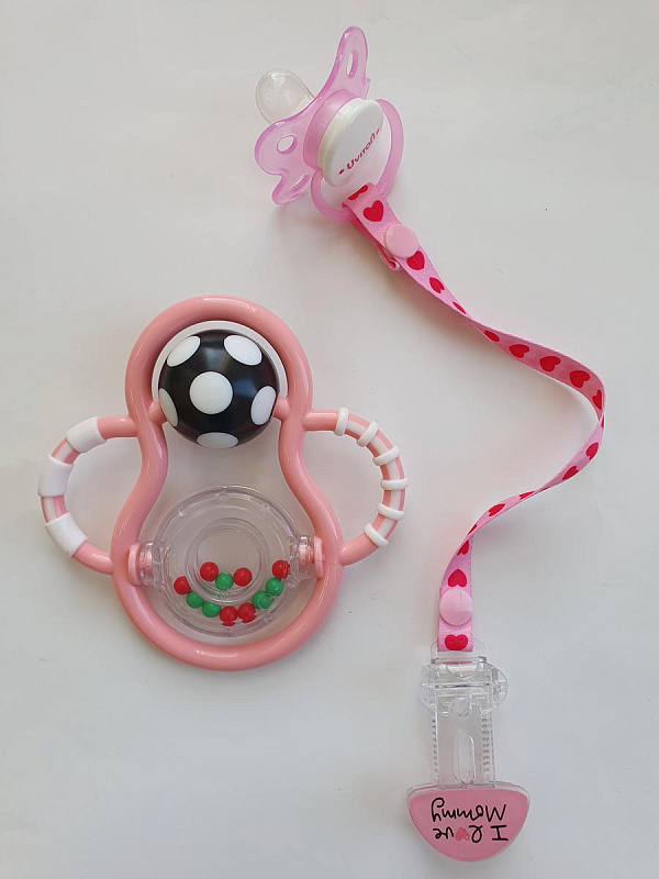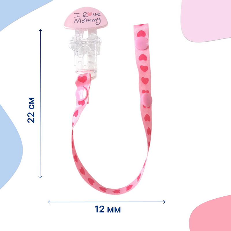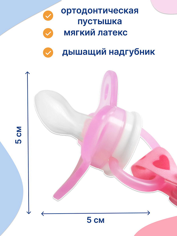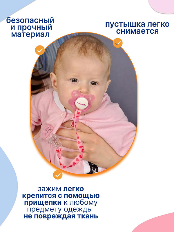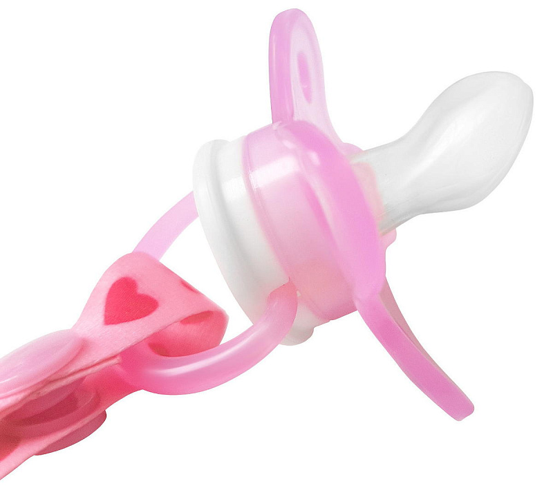 В наборе идет удобный и практичный держатель для пустышки в виде ленточке в тон к пустышке.