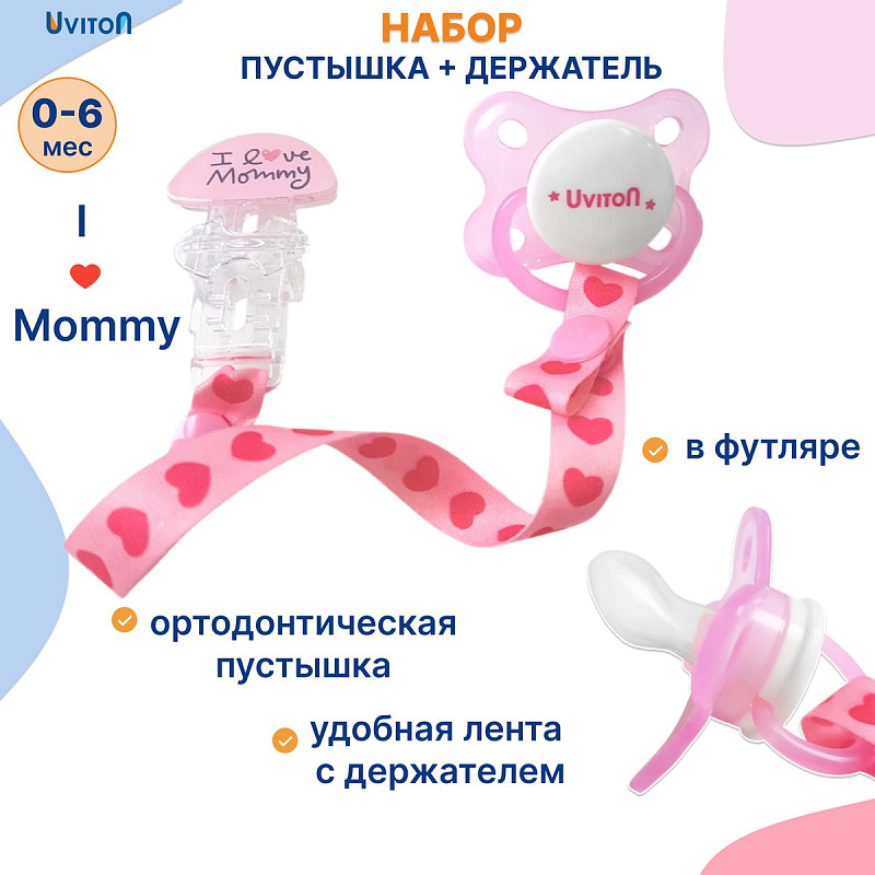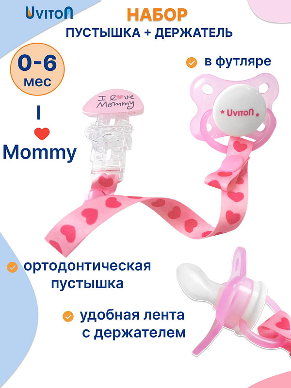 Набор Uviton I love mammy пустышка и держатель 0-6 мес 0193/02