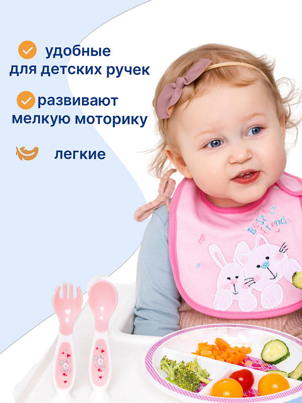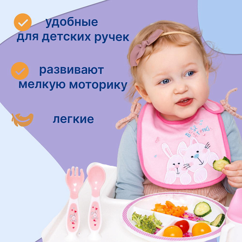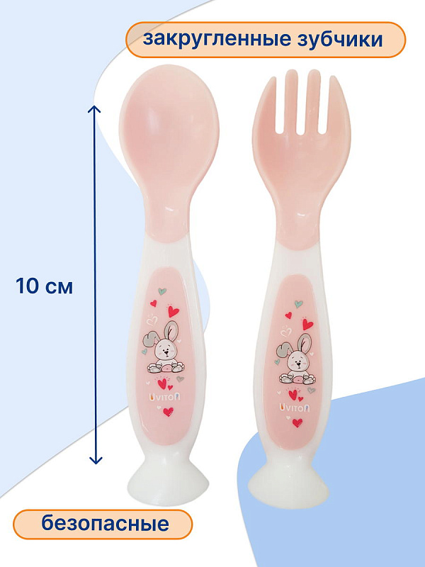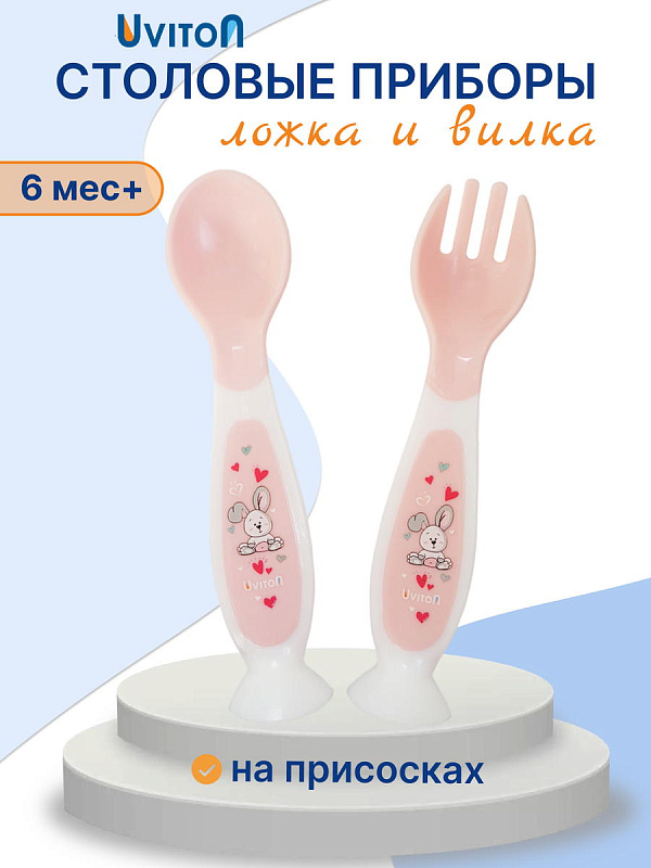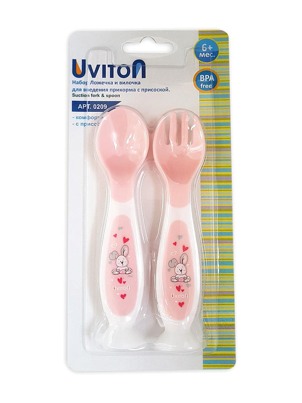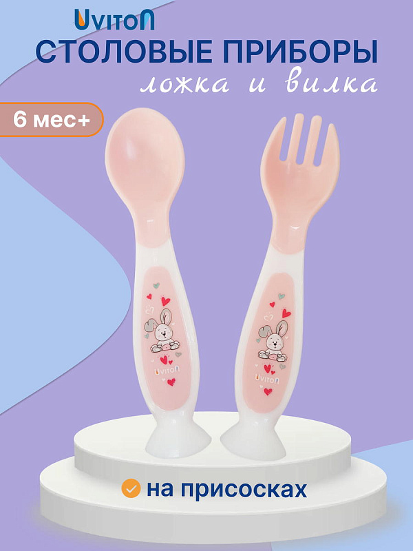 Набор Uviton Ложечка и вилочка на присоске 0209 розовый