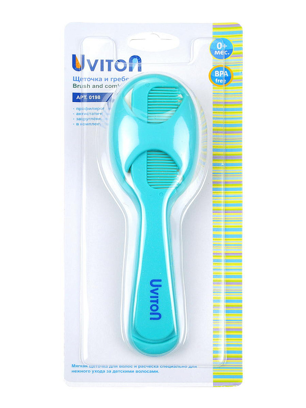 Мягкая щеточка для волос и гребешок от Uviton специально для нежного ухода за детскими волосами. Современный дизайн, эргономичная ручка. Удобное хранение - теперь гребешок не потеряется, его можно прикрепить в щеточке экономя место для хранения аксессуара.