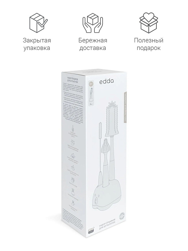 Стильный и функциональный набор ёршиков edda разработан специально для ухода за детской посудой. Это самые необходимые предметы, с помощью которых можно быстро и легко очистить детские бутылочки, соски и трубочки.