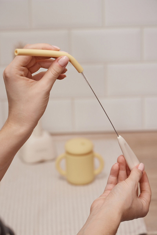 - Гибкая и тонкая щёточка легко отмывает трубочки по всей длине.