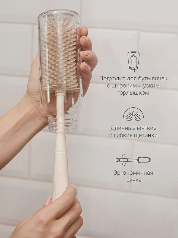 - Ёршик для бутылочек подходит для мытья разных ёмкостей как с широким, так и с узким горлышком.