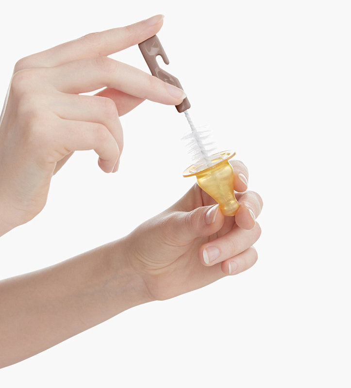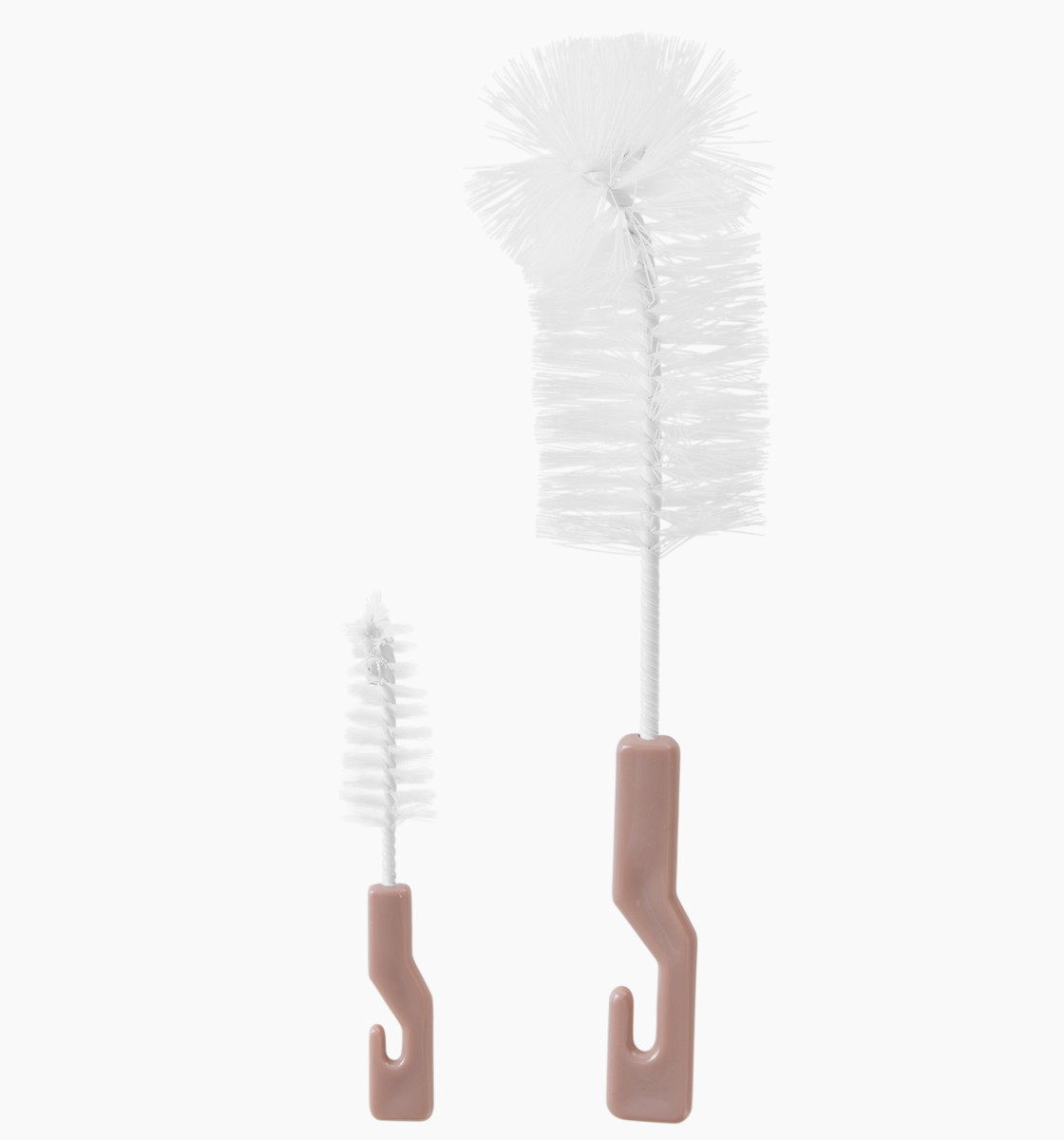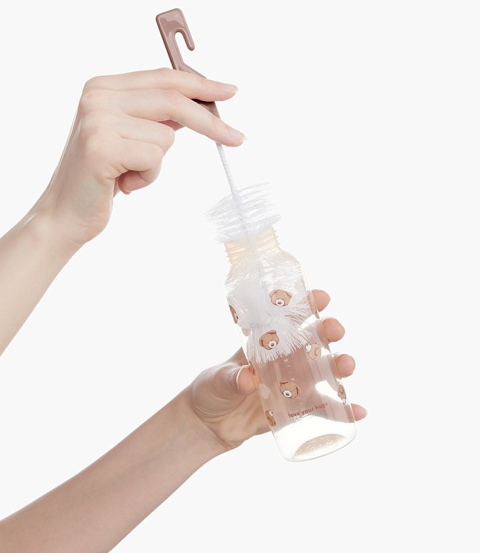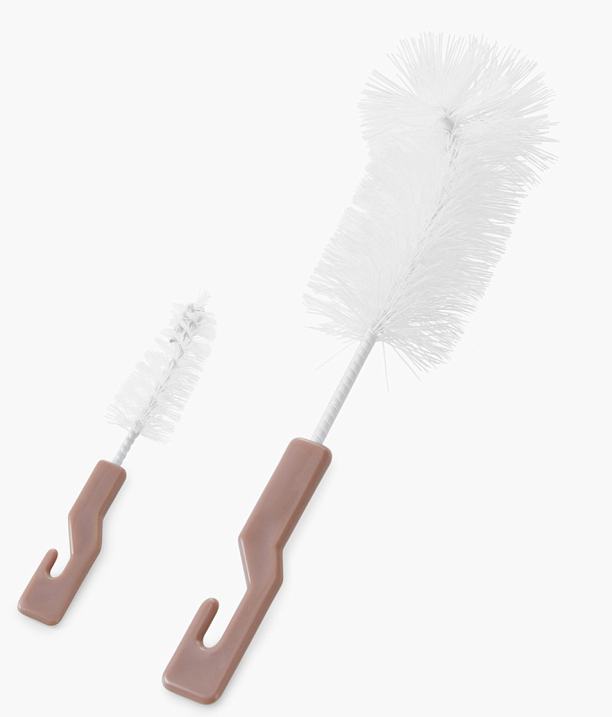 В набор входят два ёршика, чтобы безопасно и без царапин очищать бутылочки для кормления (большой ёршик) и соски (маленький ёршик). Ручки ёршиков снабжены крючками для удобства подвешивания.