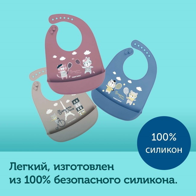 Практичный водонепроницаемый силиконовый нагрудник защитит одежду вашего малыша от загрязнения. Имеет удобный карман, благодаря которому еда не падает на пол. Регулируемая застежка позволяет легко отрегулировать размер нагрудника. Идеально подходит для дома и путешествий. Нагрудник изготовлен из легкого и 100% безопасного силикона. Доступен в трех трендовых цветах.