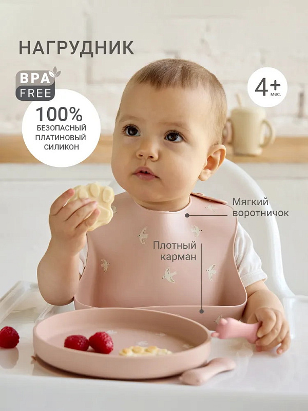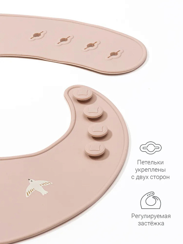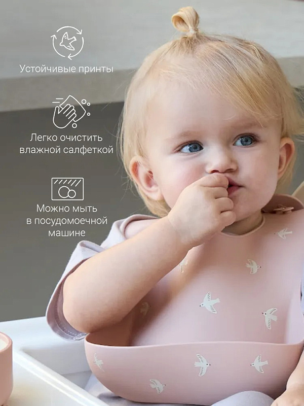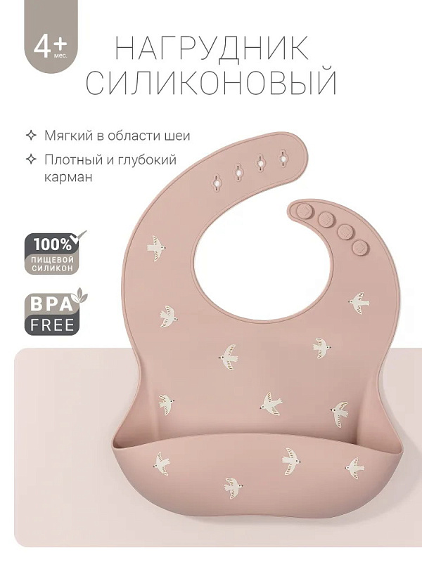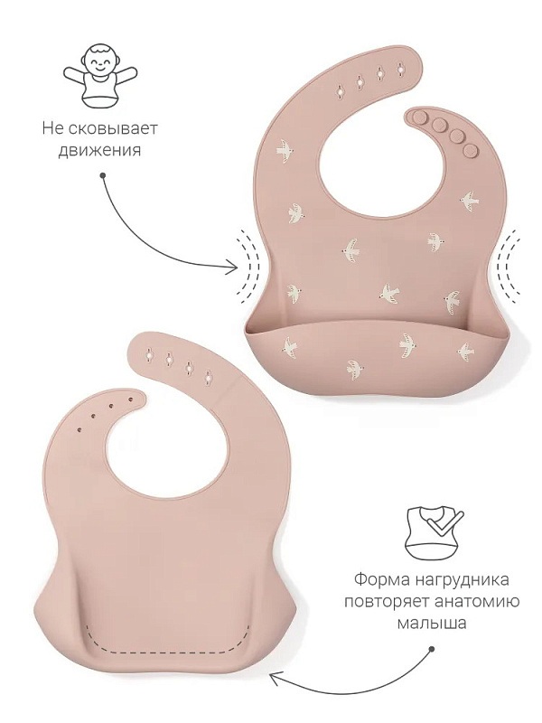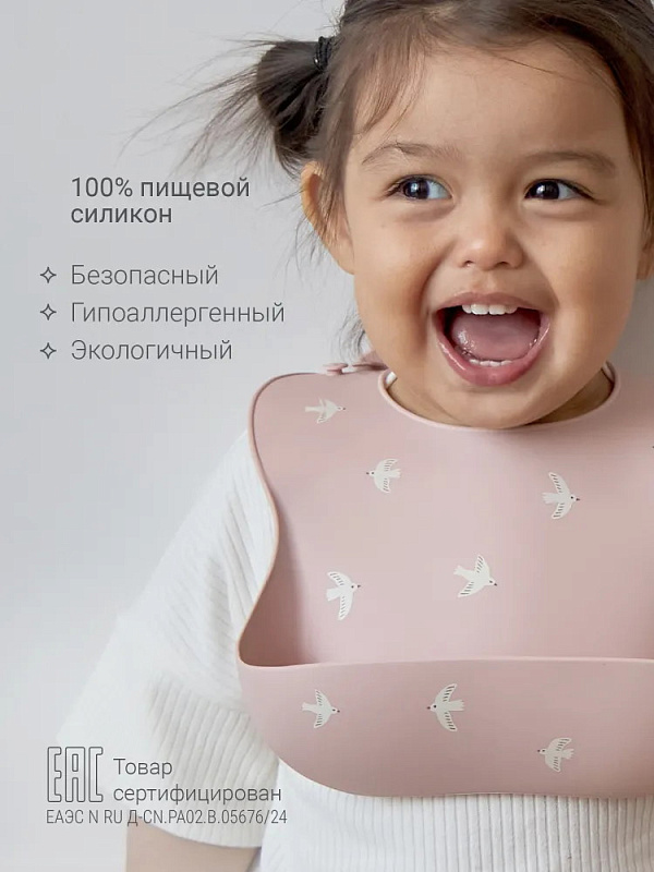 Нагрудник edda Силиконовый SB04-01002 Птички, Пудра