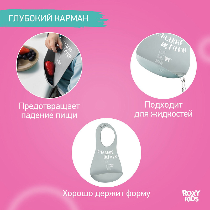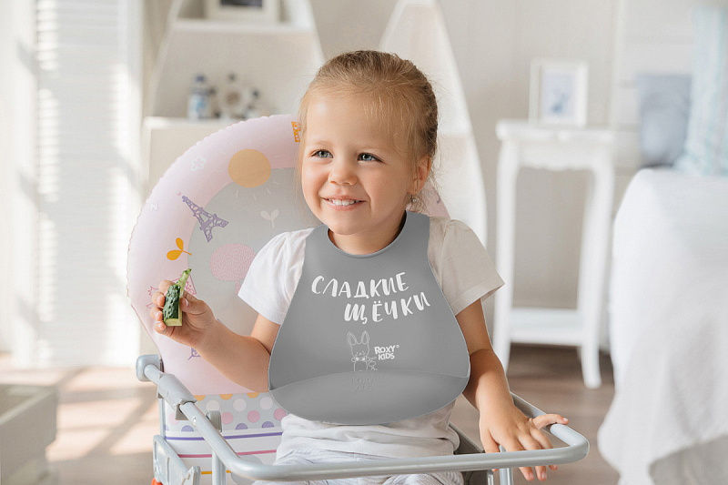 Нагрудник Roxy-Kids Сладкие щечки RBN-402GR серый