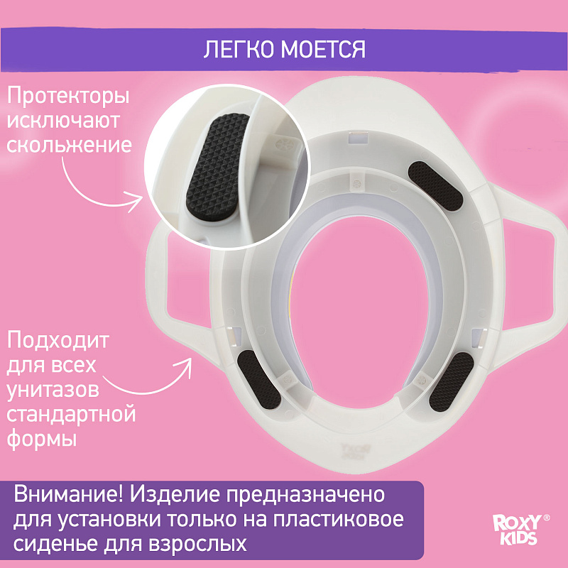 Сидение для унитаза с ручками в стороны поможет малышу привыкнуть ко взрослому туалету и обеспечит крохе необходимый комфорт. Рекомендуем перед покупкой сверить размеры вашего унитаза и размеры адаптера для проверки совместимости. Изготовлено из безопасного полимерного сырья. Обращаем ваше внимание, что оставлять ребенка на унитазе без присмотра не рекомендуется.