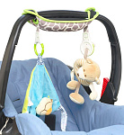 Мягкий ремешок-органайзер от Benbat может быть прикреплён на ручку автолюльки или коляски. Легкость установки обеспечивается двумя креплениями на кнопках. К тому же имеется две клипсы, на которые можно подвесить любимые игрушки. Ещё одно удобство, которое даёт этот аксессуар, - комфорт при переноске. Мягкая накладка защитит руку от натираний и давления ручки автолюльки.2 крючка-держателя для любимых игрушек и предметов первой необходимости ребенка .