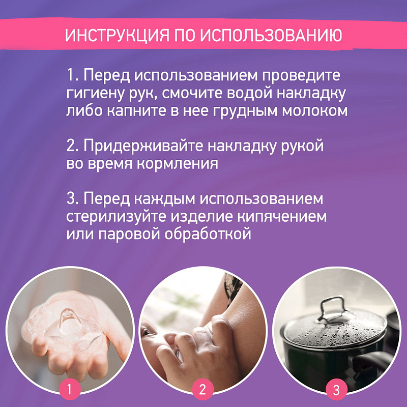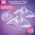 Защитные силиконовые накладки на соски избавят женщину от болезненных ощущений во время кормления грудью и защитят потрескавшиеся или воспаленные соски от травмирования. Накладки сделаны из тонкого и мягкого силикона, не имеют запаха и не влияют на вкус грудного молока. Особая форма накладок позволяет малышу ощущать запах и тепло материнской груди. После заживления сосков ребенок легко перейдет на кормление грудью без накладок. Пластиковый контейнер гарантирует удобное и гигиеничное хранение. В комплект входят 2 накладки размера S. Как выбрать подходящий размер? Размер S предназначен для диаметра соска до 12 мм, а размер M для диаметра соска до 19 мм.