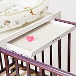 Стол расположен на оптимальной высоте кровати и снабжен удобной выдвижной полкой, поэтому вы сможете доставать нужные вещи, придерживая ребенка рукой. Столик незаменим для малогабаритных квартир и избавляет вас от необходимости покупать дополнительный комод с пеленальным столиком и отдельно пеленальный стол. Столик выполнен из массива бука, окрашен безвредной эмалью на водной основе.