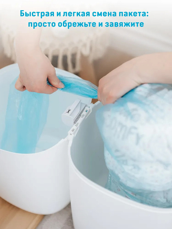 Удобный накопитель для памперсов удерживает внутри неприятные запахи и препятствует размножению бактерий, облегчает утилизацию подгузников. Специальный отсек вмещает до 38 стандартных памперсов. Модель эргономичной формы с элегантным дизайном.