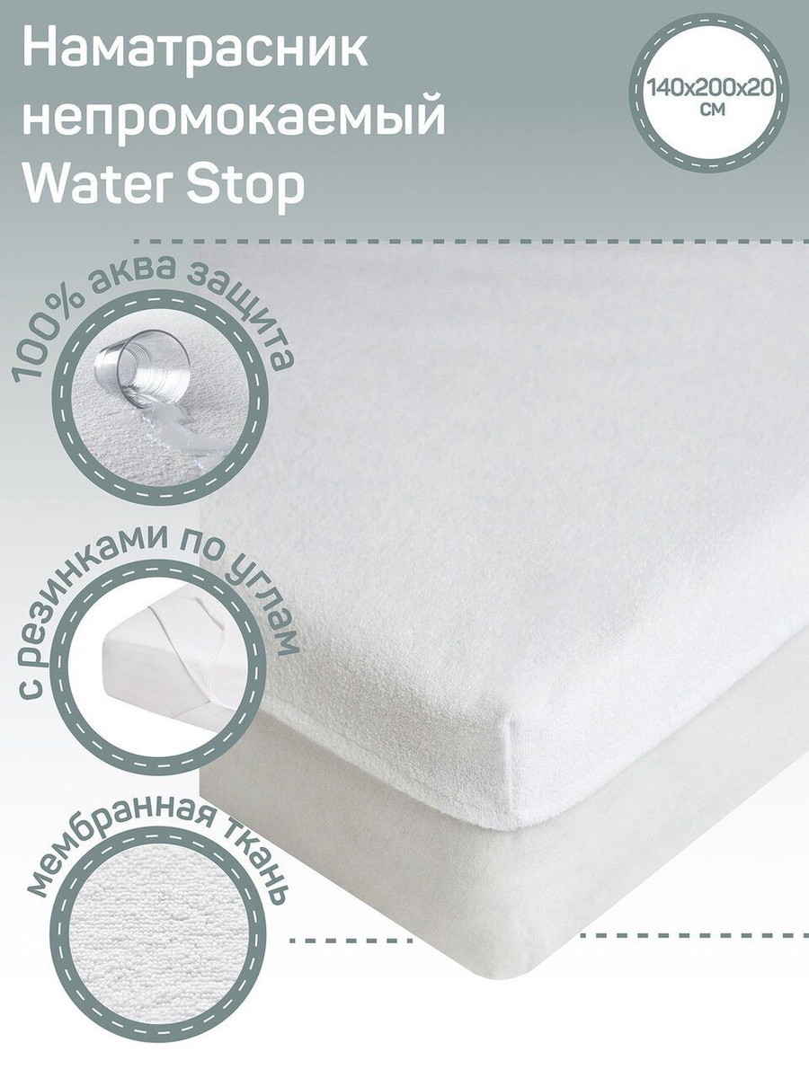 Практичный непромокаемый наматрасник AMARO HOME Water Stop с натяжными резинками по углам. Изготовлен из махровой ткани, обратная сторона – водонепроницаемая мембрана, хорошо пропускает воздух, позволяя материалу «дышать», но не пропускает воду. Обеспечит надежную и долговременную защиту вашему матрасу от загрязнений и влаги. На влагонепроницаемую модель необходимо обратить внимание всем, у кого в семье есть маленькие дети или домашние питомцы. Она подойдет и для медицинских целей. Непромокаемый наматрасник мягкий, не шуршит. Наматрасник AMARO HOME Water Stop - незаменимая вещь в Вашем доме.