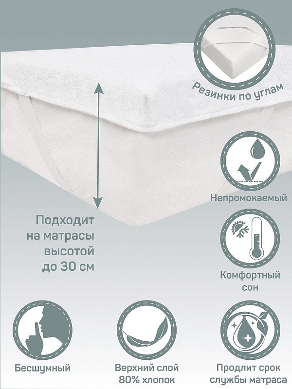 - Непромокаемый наматрасник послужит защитой Вашего матраса как от обильного воздействия влаги так и от механических повреждений.