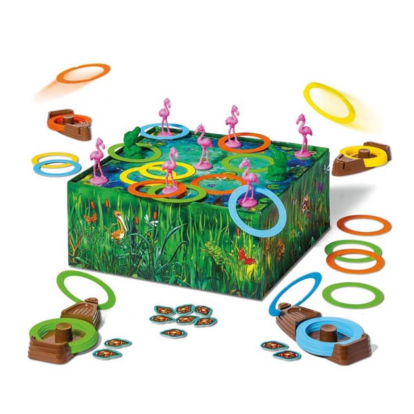 - В набор входят: 3-D поле с красочным оформлением лагуны, крокодилы (2), фламинго (7), лодки спасательные (4), круги различных цветов (48), фишки-раковины (12).