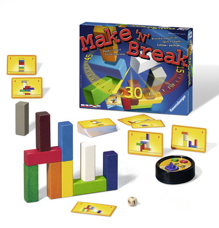 В наборе1 таймер,10 деревянных строительных элементов,60 карточек схем,