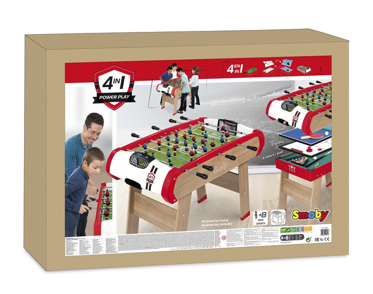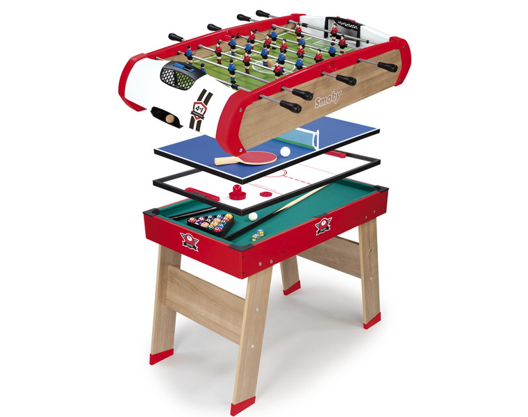 Настольная игра Smoby 4 в 1 640001 отличается своими функциональными возможностями. Ребенок может выбрать, чем заняться на свое усмотрение: хоккей, футбол, бильярд или пинг-понг. Данная модель объединит семью на много часов совместного времяпрепровождения.