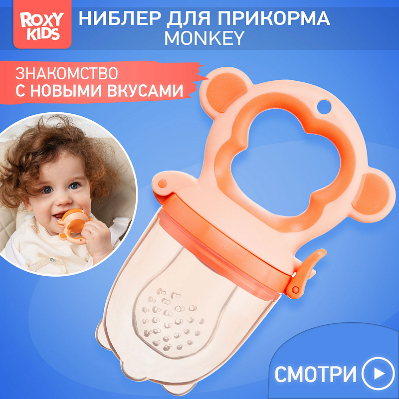 Ниблер для прикорма Roxy-Kids с силиконовой сеточкой Monkey