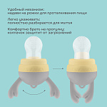 Идеально подходит для путешествий и кормления ребенка на начальном этапе введения прикорма. Благодаря механизму в ручке изделия, пищу можно подтолкнуть ближе к кончику сетки. Изделие для прикорма легко мыть за счет того, что оно полностью разбирается. Надежная система не позволит ребенку случайно открыть емкость. Изготовлено из безопасных материалов.
