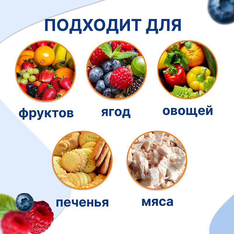 для всех типов пищевых продуктов - фруктов, овощей , мяса, рыбы , хлеба и печенья;