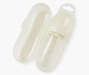 Ручка-мешочек из мягкого силикона позволяет малышу самостоятельно держать ниблер во время кормления. Пластиковый колпачок защищает силиконовую насадку от загрязнения и может служить чашечкой. Удобный контейнер позволяет брать ниблер с собой и кормить ребенка во время прогулки.