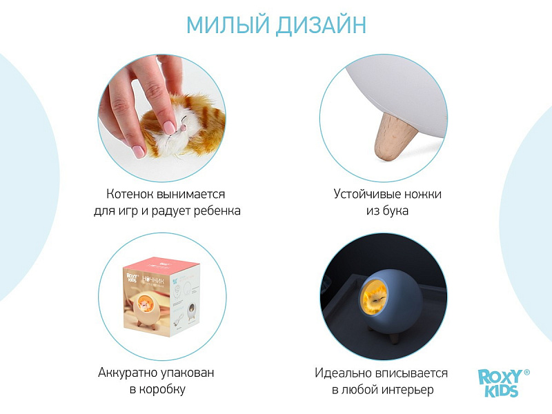 Детский ночник с мягким рассеянным светом и простым минималистичным дизайном в виде домика для котенка украсит спальню ребенка и сделает любой интерьер уютнее. Фигурка котика внутри ночника сделана вручную. Котенок крепится на магнит и легко вынимается для игр. 10 LED-лампочек обеспечивают равномерное свечение. Ночник снащен диммером для плавной ступенчатой регулировки яркости. Встроенный 1200 мАч литий-ионный аккумулятор обеспечивает возможность работы без подзарядки около 20 часов. Ночник заряжается при помощи комплектного кабеля микро-USB от сети или компьютера. Световой индикатор позволяет определить, когда ночник полностью заряжен. Управление осуществляется одной кнопкой в задней части корпуса.