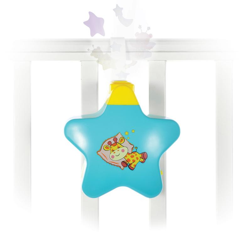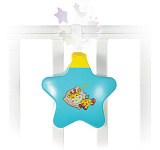 Изделие надежно и просто крепится на бортике кроватки. Оснащено специальным проектором, который отбрасывает на стены и потолок детской комнаты причудливые изображения, создавая сказочную убаюкивающую атмосферу.