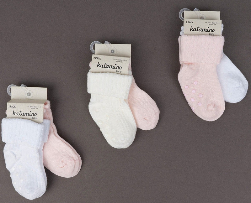 Носки детские Katamino с антискользящей подошвой для девочек, в упаковке 2 пары, производятся в Турции. Продукция бренда Katamino зарекомендовала себя на международных рынках благодаря высокому качеству, использованию лучших материалов, оригинальному дизайну и широкому ассортименту. Состав носок включает 80% хлопка, 18% полиамида и 2% эластана.