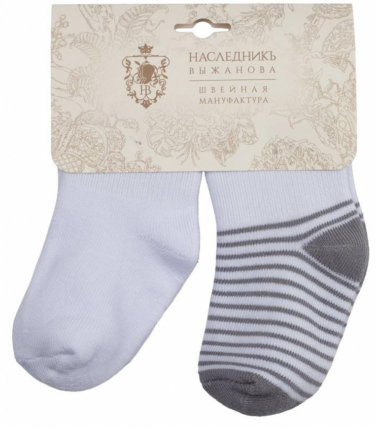 Носки НаследникЪ Выжанова махра 2 шт Н7НВ ЧЗ белый/серый, р.10, 3-6 мес