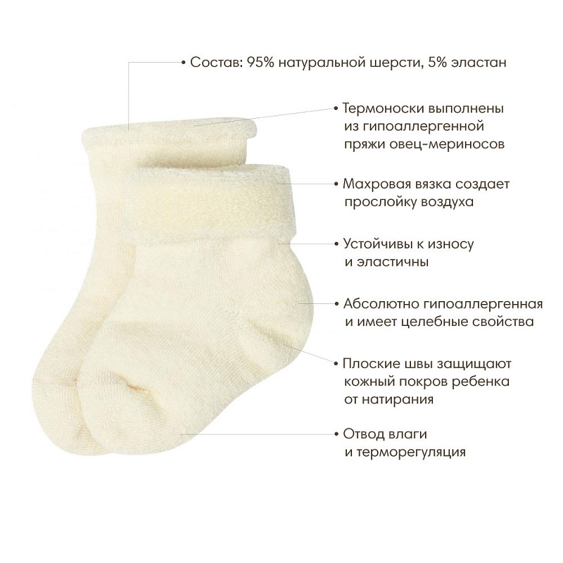 Носки Olant Baby детские шерсть плюш GTD молочный 1