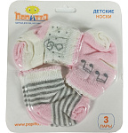 Комплект их 3-х пар хлопковых носочков для малышей. Выполнены из гипоаллергенного хлопка. Резиночки не стягивают ноги. Малыши чувствуют себя комфортно в таких носочках.
