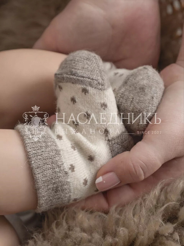 Носочки НаследникЪ Выжанова 100% овечья шерсть д/с SW70080 бежевый, крапинка 1