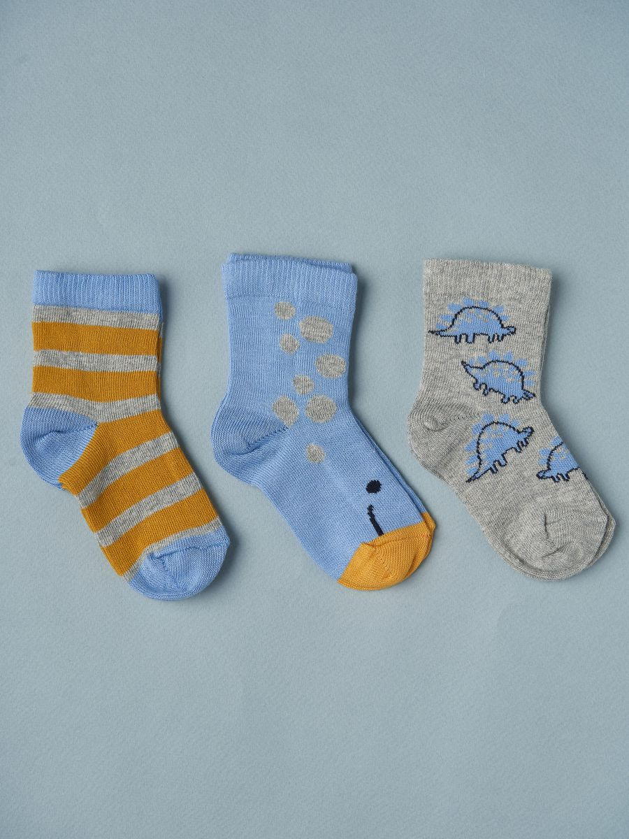 Носочки тонкие Little Star 3 шт в уп 02199 (ЧЗ-мз) динозаврики, серый, голубой, оранжевый, 11 см