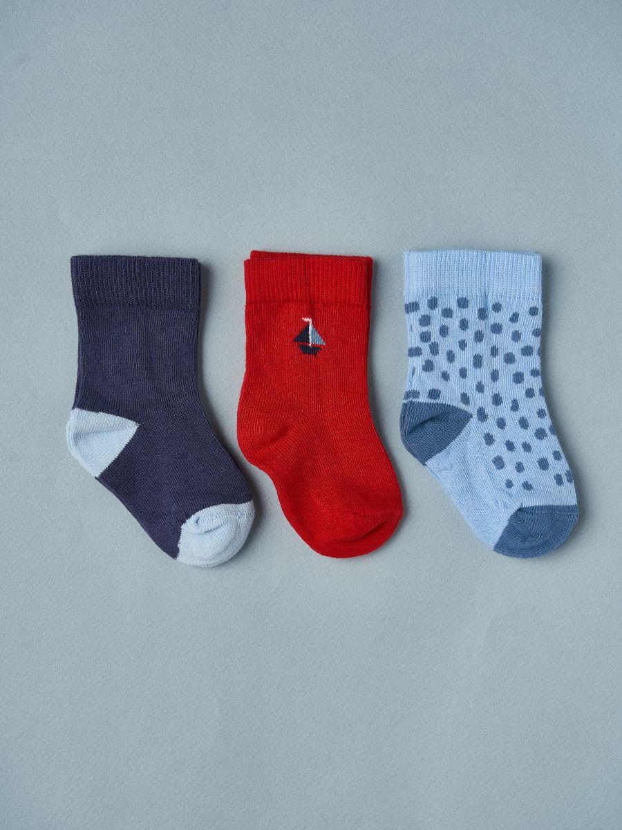 Носочки тонкие Little Star 3 шт в уп 02199 (ЧЗ-мз) кораблик, горошки, синий/красный/голубой