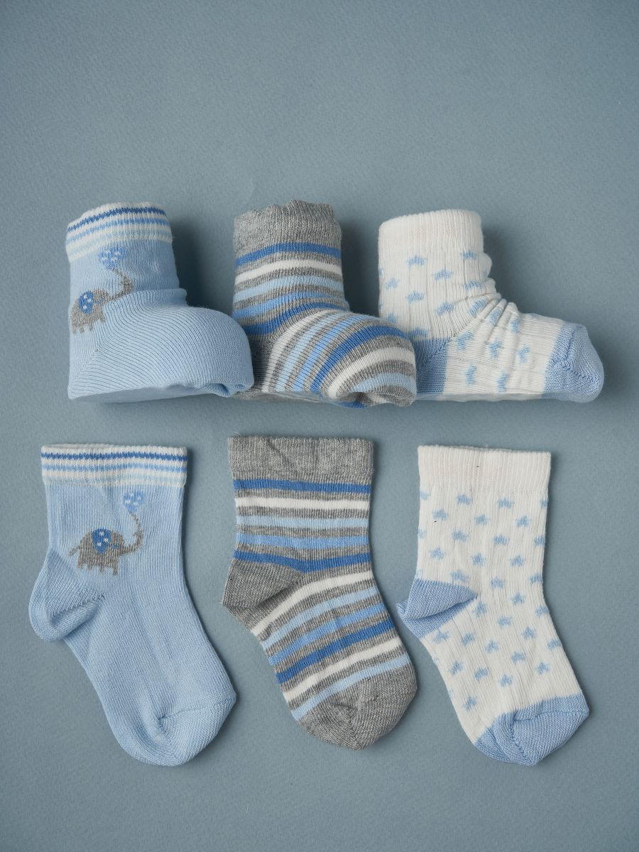 Носочки тонкие Little Star 3 шт в уп 02199 (ЧЗ-мз) слоник, голубой/серый/крем