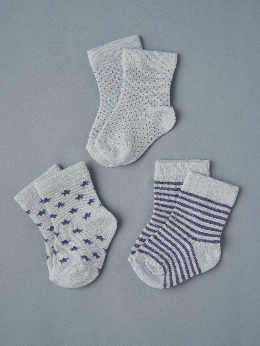 Носочки тонкие Little Star 3 шт в уп 02199 (ЧЗ-мз) звездочки, голубой/полоски/звездочки, 10 смНет оценокХарактеристики