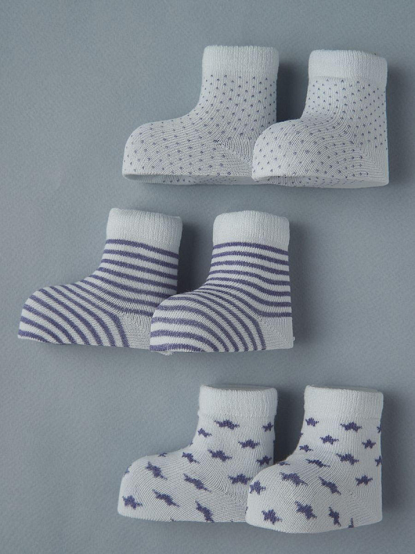 Носочки тонкие Little Star 3 шт в уп 02199 (ЧЗ-мз) звездочки, голубой/полоски/звездочки, 10 см
