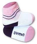 Мягкие и комфортные носочки для малышей Uviton изготовлены из натурального хлопка. Нежно - розовый и белый цвет изделий в сочетании с красочным рисунком выглядит очень привлекательно.