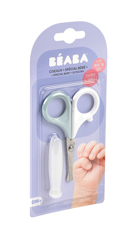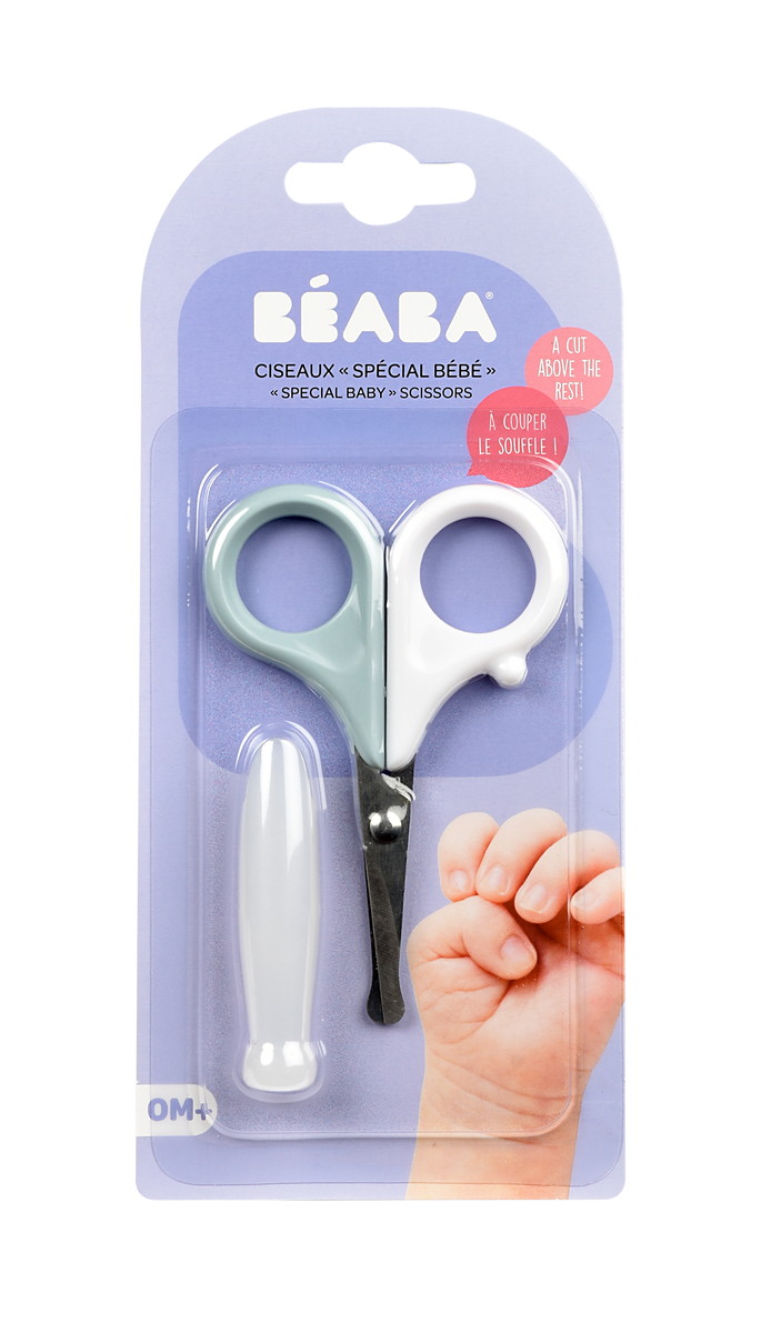 Детские ножницы BEABA с закругленными наконечниками для безопасной стрижки ногтей ребенка.