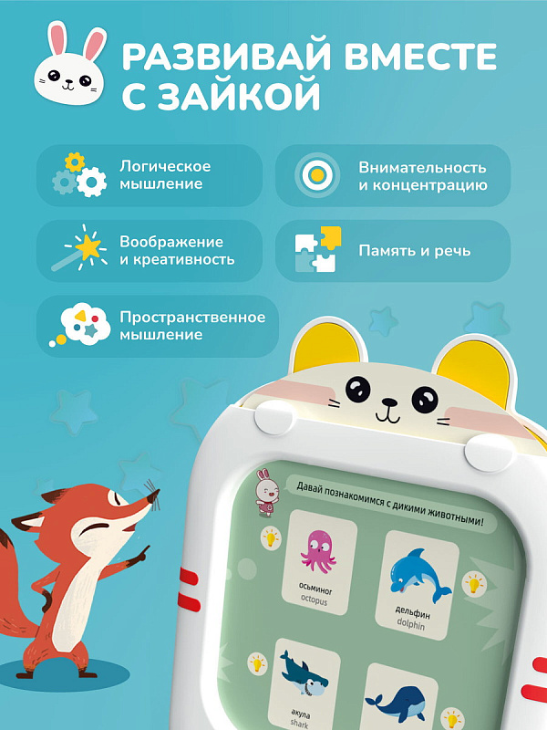 Привет, я Обучай-Зайка alilo – интерактивный развивающий планшет!