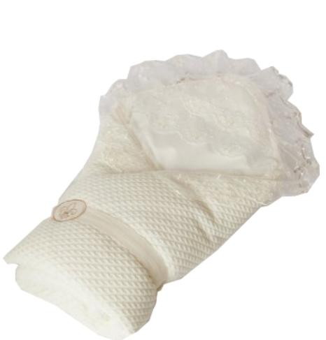 Конверт-одеяло вязаный Lappetti Косички кремовый, холлкон